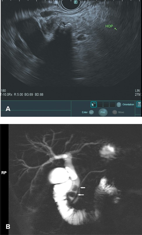 In a large meta-analysis, EUS was found to have a significant benefit in detecting occult biliary disease compared with MRCP (Figure 3B) in IAP.29 Ardengh et al found gallbladder microlithiasis in 27 of 36 patients with IAP using EUS (75%).38 When compared with the final surgical resection specimen, the sensitivity and specificity for EUS identification of gallbladder microlithiasis were 92.6% and 56%, respectively. The overall EUS accuracy in this study was 83.2%.